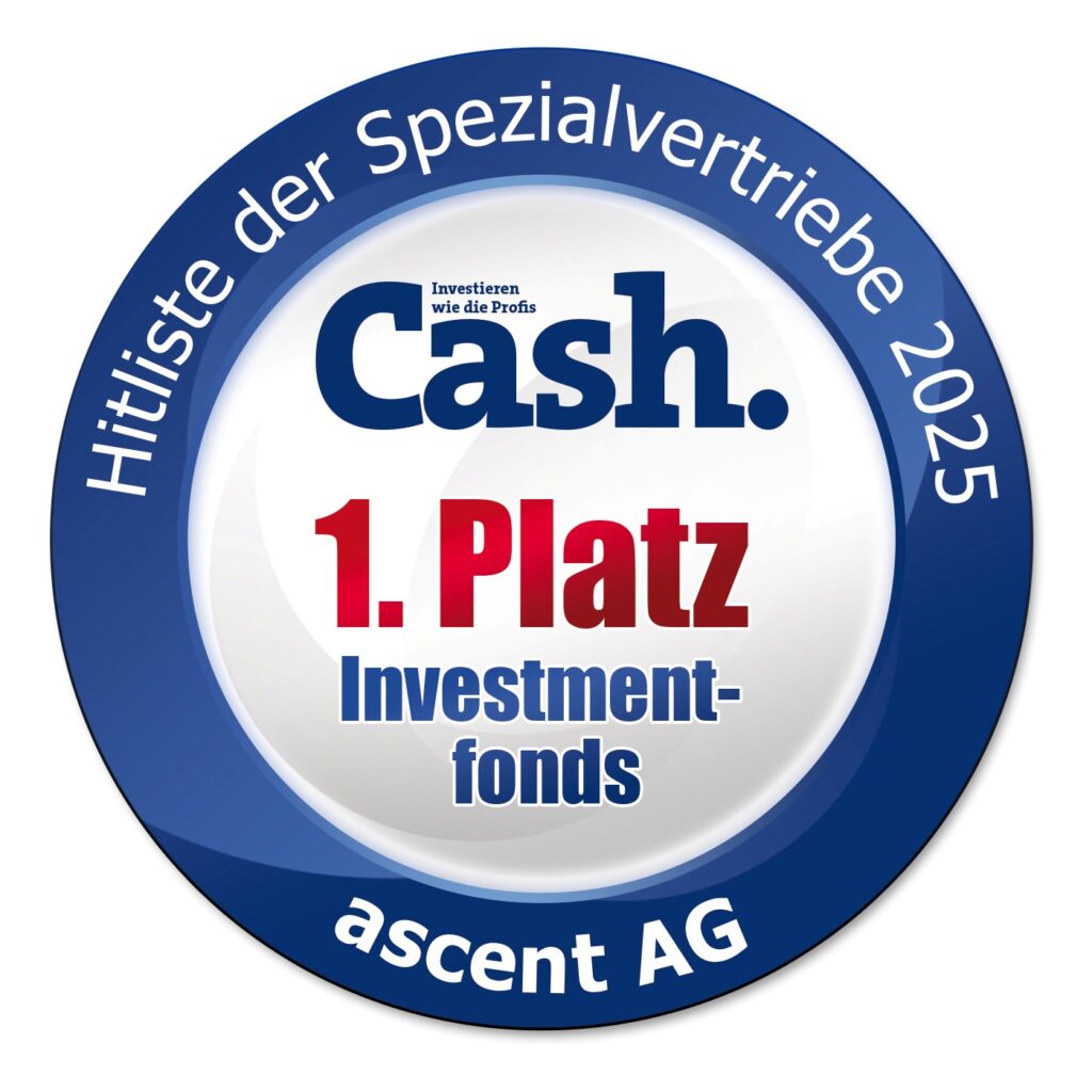 Übrigens: Wir wurden auch in diesem Jahr mit dem Cash.-Siegel ausgezeichnet: Wir haben in der Kategorie Spezialvertriebe für Investmentfonds den 1. Platz in der Rangliste des Finanz-Fachmagazins belegt.